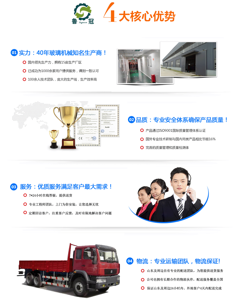 山東魯冠玻璃機械有限公司,是從事玻璃機械的老牌企業,在我國玻璃制品行業上享有較高的聲譽。我公司具備良好的整體素質和技術力量,設備齊全,擁有完善的質量管理和質量檢測體系。主營產品:玻璃加料機,斜毯式玻璃加料機,懸掛式玻璃加料機,擺桿式玻璃加料機,裹入式全密封加料機等。 企業始終堅持“科學技術是主要生產力”的主導思想,不斷加大新產品研發力度,玻璃機械產品的開發生產,為適應玻璃制品行業發展需要,相繼先后研制...